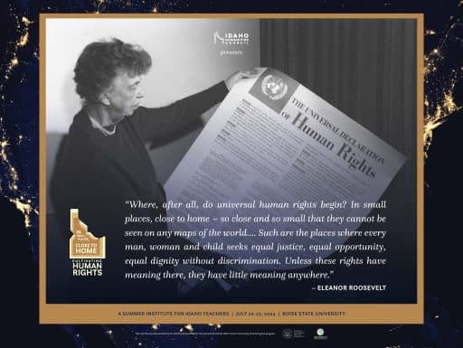 The Idaho Humanities Council hosted a weeklong summer institute, titled In Small Places, Close to Home: Cultivating Human Rights July 22-27, 2024, at Boise State University in partnership with the Wassmuth Center for Human Rights. Twenty-nine teachers from around the state participated.